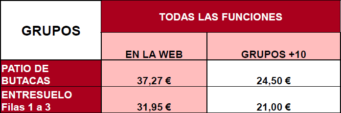 Entresuelo menos visibilidad: 25,00€ Gastos de ticketing no incluidos.