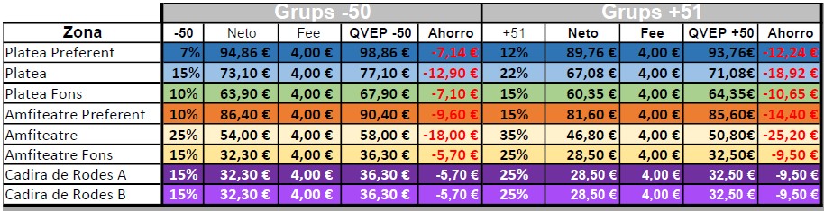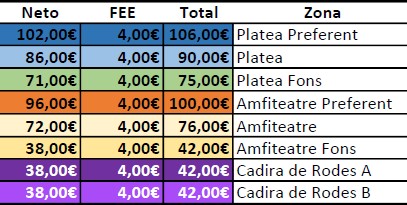 Para esta temporada los gastos de gestión será un importe fijo de 4€ por butaca.