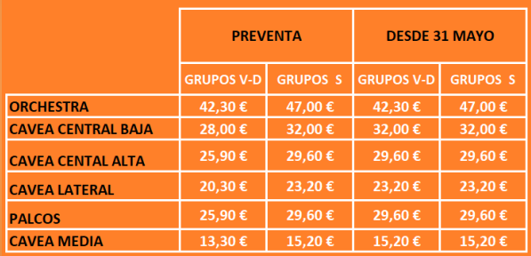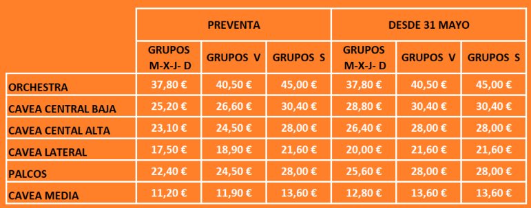 Pago y cierre de reservas: 20 días ANTES DE LA FECHA DE LA FUNCIÓN RESERVADA.